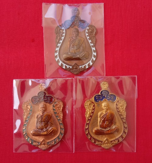 เหรียญเสมาหลวงพ่อแถม วัดช้างแทงกระจาด เพชรบุรี รุ่นเพชรเศรษฐี ชุด กรรมการลงยาหลังยันต์นูน 3 เหรียญ ประกอบด้วย