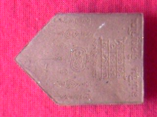 โดยขึ้นรูปเป็นพระพิมพ์ปางมารวิชัย ที่มีพญานาคพันกัน (เกี้ยวกัน) สามตัว (สวยงามมาก) แผ่พังพานเหนือองค์พระพุทธเจ้า อันมีความหมายแฝงเป็นนัยยะที่สำคัญถึง ความอุดมสมบูรณ์พร้อมในทุุกๆ ด้าน การได้รับการยอมรับในสังคม และความช่วยเหลือในด้านต่างๆจากคนรอบข้าง การมีอำนาจบารมีเหนือผู้อื่น การเจริญก้าวหน้าในหน้าที่การงาน การหนุนดวง การเสริมดวง และการเรียกโชคเรียกลาภเข้ามาหาตัว ตลอดจนยังเป็นมหาเสน่ห์ต่อเพศตรงข้ามอย่างรุนแรงอีกด้วย ด้านหลัง หลวงปู่ได้วางยันต์ โดยใช้ยันต์ "มหาแสนรุมล้อม" หรือที่เราเรียกกันว่า "มะรุมมะตุ้ม" และหัวใจสาลิกาตัวผู้ และตัวเมีย (ซ้าย-ขวา) ยันต์นะอกแตก และยันต์หัวใจมนุษย์ผู้ชาย และมนุษย์ผู้หญิง