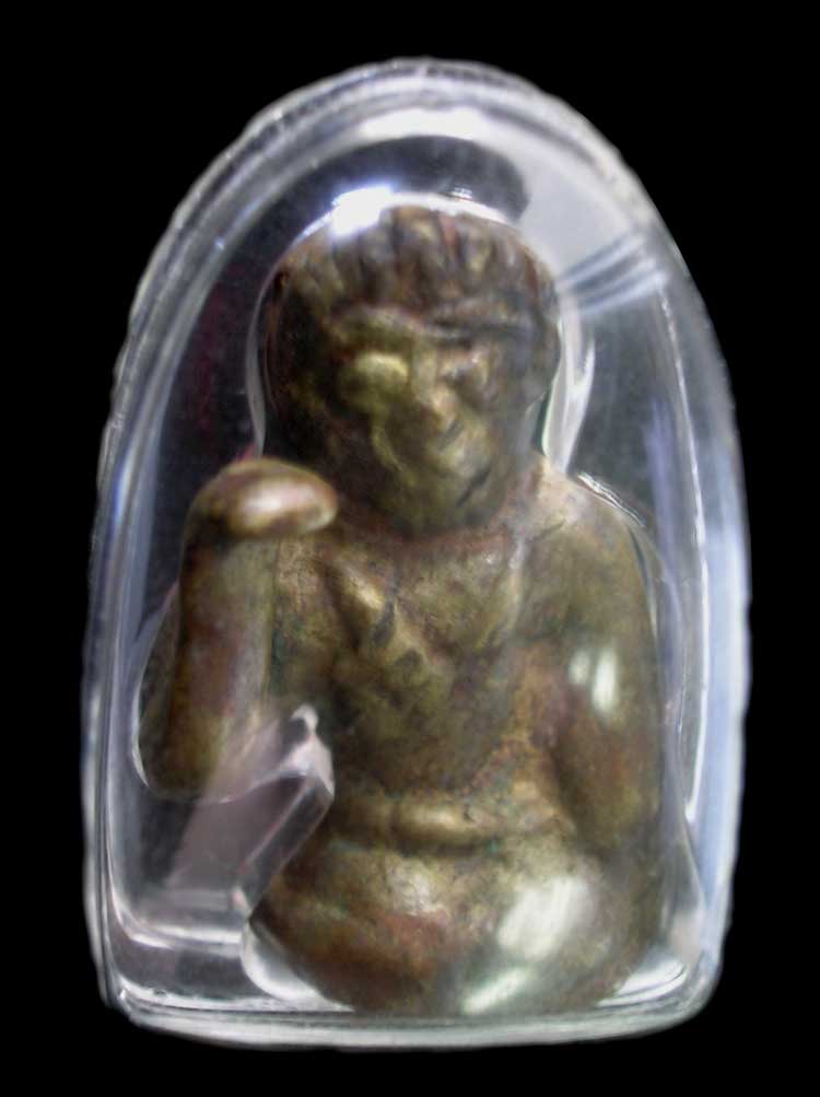 พ.ศ.๒๔๗๐ กว่าๆ สร้างแม่นางกวัก จากเนื้อโลหะ ทองประสมสีสันวรรณะออกไปทางเหลืองอมเขียวปรากฏเกล็ดเหลือง