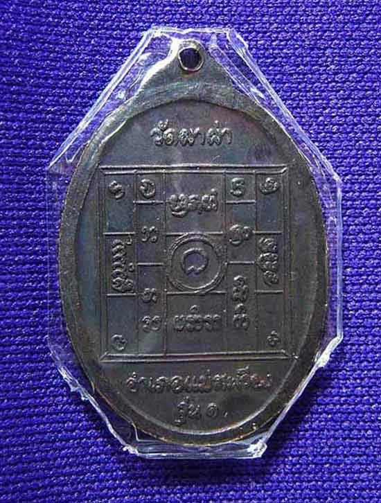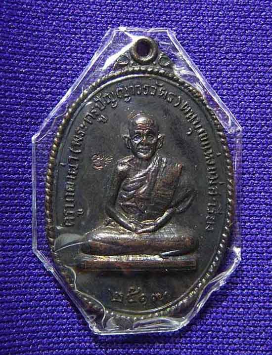 เหรียญที่โชว์....เป็นเหรียญรุ่นแรก นั่งเต็มองค์ หลังยันต์ เนื้อทองแดง ปี 2517 ตอกโค้ด "กว"