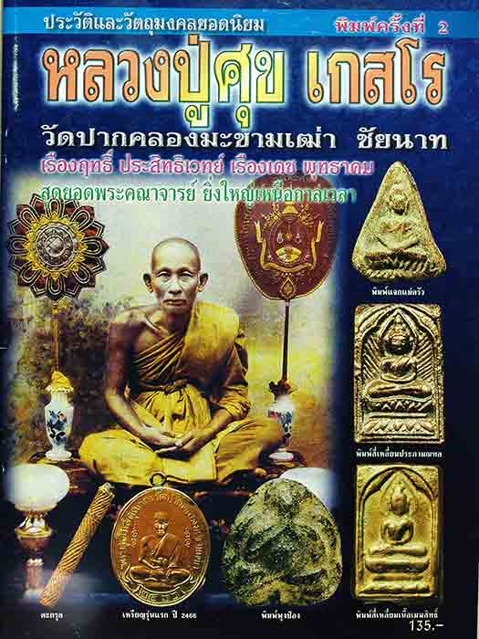 หลวงปู่ศุข วัดปากคลองมะขามเฒ่า ออกวัดคลองขอม พระองค์นี้ครั้งที่ได้บูชาไม่ทราบว่าเป็นพระที่อยู่ในหนังสือ เพราะเช่ามาถูกเหมือนได้ฟรีเพราะเช่ามาพร้อมตลับเงินใบที่อยู่ในหนังสือเลย เห็นพระที่ตัวเองเช่ามาแล้วอยู่ในหนังสือถึงกับงงว่าเช่ามาได้อย่างไร แต่ภายหลังก็รู้ว่าพระที่เช่ามาเป็นของพ่อของคนขายซึ่งเสียไปแล้วและลูกชายนำมาออกให้เช่า โล้งใจไม่ใช่พระขโมย เลยนำออกงานประกวดผลที่ออกมาแชมป์ครับ |