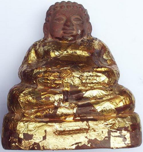 พระสังกัจจายน์เนื้อดิน ขนาดหน้าตัก 5 นิ้ว ผมดูเหมือนว่าน้าจะบอกว่าเป็นหลวงพ่อกวยวัดโฆษิตาราม คือพระองค์นี้ได้ย้ายมาจากบ้านยายที่อัมพวา เอามาตั้งบูชาที่บ้านที่กทม. เมื่อวันเสาร์ที่ผ่านมานี้เอง แต่ผมไม่ได้ใส่ใจ