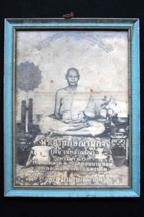 รูปแรกที่จะขอแนะนำครับ...หลวงพ่อเงิน วัดดอนยายหอม รูปถ่ายขนาดบูชา เป็นภาพสมัยเมื่อท่านยังไม่ได้รับพัสยศเป็นพระราชเลยครับ (ยังเป็นพระครูอยู่) เป็นรูปที่ออกให้เป็นที่ระฤกในปี 2493 ซึ่งเป็นปีที่ออกเหรียญรุ่นแรกครับ คาดว่าน่าจะเข้าพิธีพร้อมกันครับ พร้อมกรอบไม้เดิม ๆ สวย ๆ เลย หลังจารมือครับ หายากสุด ๆ สายตรงตัวจริงเห็นต้องซู้ดปากเลย |