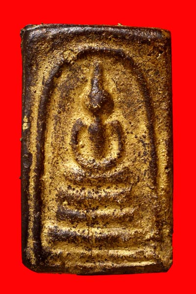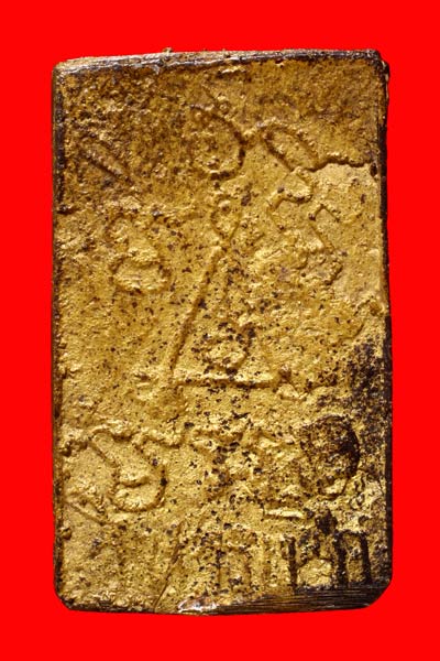สำหรับองค์นี้เป็นเนื้อโลหะผสม ยุคต้น จะแก่ทองออกเหลืองสุกเหมือนทองคำ หลังยันต์สาม มีเขียนวัดวิหารเบิก