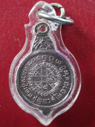 ผ่าศูนย์กลางประมาณ 1.5 เซนติเมตร ด้านหน้าเป็นรูปหลวงปู่ครึ่งองค์ หันเฉียงเล็กน้อย ที่ยอดแหลมด้านบนเป็นตัว