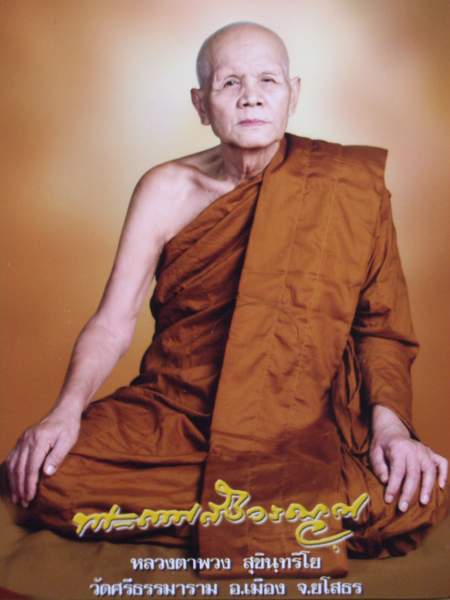 พระเทพสังวรญาณ หรือหลวงตาพวง สุขินทริโย เจ้าอาวาสวัดศรีธรรมาราม จังหวัดยโสธร หลวงตาพวงท่านเป็นศิษย์