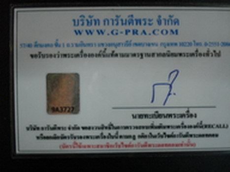 บัตรรับรองพระเครื่อง ของบริษัท การันตีพระ จำกัด