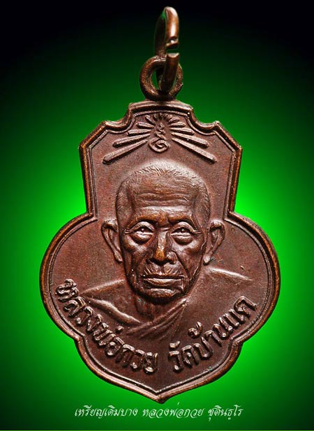 เหรียญหลวงพ่อกวย ออกวัดเดิมบางนางบวช สร้างขึ้นในปี พ.ศ.๒๕๑๓ เป็นเหรียญรูปโล่ฝลั่ง