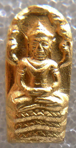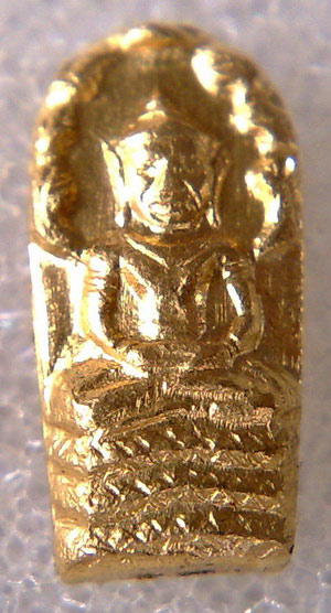 ปรกองค์จ้อยทองคำ ลองพิมพ์ หลังเรียบ (ตอกโค๊ต นะ ชินบัญชร) อีกสักครั้ง จะ จะ ไปเลย เคยสงสัยว่าทำไมต้องเอาเนื้อทองคำมาลองพิมพ์ด้วย ก็ได้รู้คำตอบว่า พระองค์นี้ ปั๊มหลังจาก ปั๊มเนื้อทองแดงจนแผ่นทองแดงหมด ช่างที่ปั๊มพระเห็นว่ามีแผ่นทองคำเหลืออยู่ เลยมาทดลองพิมพ์ดู ได้จำนวน 2 องค์ หนึ่งองค์ได้ป้๊มยันต์ด้านหลังด้วย แต่องค์นี้ไม่ได้ปั๊มยันต์ด้านหลัง แต่ตอกโค๊ต นะชินบัญชรไว้ด้านหลัง และมีรอยจารอักขร ด้วย สังเกตุลักษณะพิมพ์จะเห็นว่าเป็นพิมพ์ หูขีด แต่หน้าไม่แตก บางคนดูแล้วบอกว่าเป็นพระเก๊ ถ้าพี่ๆท่านใดเจอะพระเก๊แบบนี้เอามาให้ผมชมด้วยครับ |