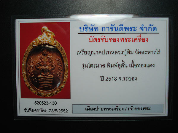 เหรียญปรกไตรมาส หลวงปู่ทิม เนื้อทองแดง ตอก 2 โค้ด อิ+3 มีบัตรรับรองพระแท้ ปิดประมูลไปที่.....18500 บาท  |
