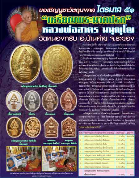 | หัวข้อกระทู้ : => กำลังแรง เลยนำมาให้ชมกันอีกครั้ง ปรกไตรมาส ๕๑ หลวงพ่อสาคร วัดหนองกรับ.. |