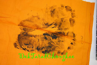 ส่วนผืนนี้เป็นรอยเท้าบนผ้าขาว ครับ ที่วัดทำให้บูชาคนทั่วไป