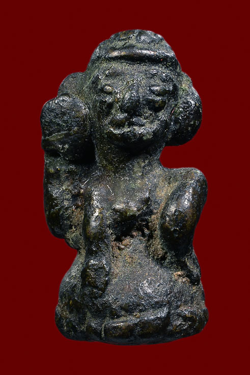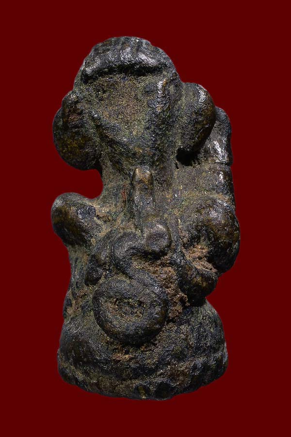 องค์ที่นำมาให้ชมนี้ ผ่านการบูชามาโชกโชน จึงทำให้เนื้อหาเข้มข้น จัดจ้าน จากทองผสม จึงออกอมเขียวเข้ม มีเสน่ห์ยิ่งนัก หลังมียันต์อุ ก้นองค์นี้ ยังขดกันเป็นวงเรียงกันสวยงามเหมือนศิลปะเขมร อย่างไงอย่างงั้น บ้างก้อว่าเป็นศิลปะทางใต้ แต่ส่วนตัวผมยังยืนยันว่าเป็นนางกวักของหลวงพ่ออิ่มวัดหัวเขา แบบนี้ผมชอบครับ..ประเภท เห็นแล้วรักเลย