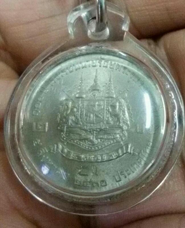 สร้าง 1000 เหรียญ ไม่รู้ไปไหนหมด ทุกเหรียญตอกโค้ด มี แบบ 10 บาท 500 เหรียญ แบบ 2 บาท 1000 เหรียญ พนักงานกองกษาปณ์สร้างปี 2530 หลวงพ่อกล่าวว่า ร.5 และ ร.9 ท่านมีบารมีที่ยิ่งใหญ่ พกเหรียญนี้เข้าได้ทุกที่ ด้านหน้าลงพระคาถาหัวใจยอดศีล พุทธะสังมิ ไปไหนมาไหนแคล้วคลาดปลอดภัย ไม่มีอันตราย และไม่ตายโหง ด้านหลังลงพระคาถาหัวใจพญาราชสีห์ สัตถาอะหะ เป็นเมตตามหานิยม มหาอำนาจ ไม่มีใครทำร้ายได้ ใครมีจะออกบอกมาครับ |