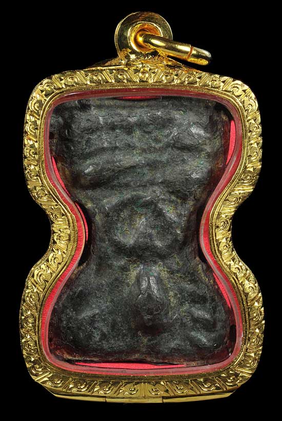 สำหรับองค์นี้ เป็นพระเนื้อชินเงิน ซึ่งเนื้อพระจะแข็ง แต่หากตกพื้นมีหักแน่นอน พระระเบิดจากด้านในรอยปริแตกธรรมชาติของพระประเภทนี้ ผิวพระจะเป็นสองชั้น