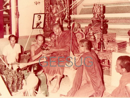 จริงครับ...ภาพถ่ายในงานพิธีพุทธาภิเษกวัตถุมงคลของหลวงพ่อโอดที่วัดจันเสน โดยมีหลวงพ่อพรหม วัดช่องแค เป็นประธานในพิธี ข้างหลังภาพจารด้วยยันต์นะ 3 ตัว (ยันต์ประจำตัวของหลวงพ่อโอด วัดจันเสน) ภาพนี้เป็นภาพที่อัดใหม่ในปี 2526 ครับ  |