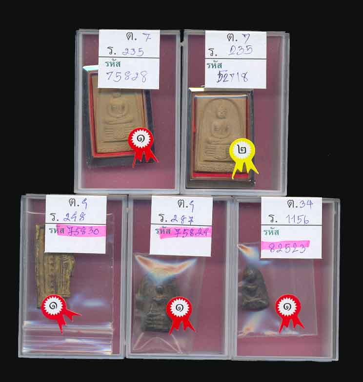 แถวบน : 1.พระผงหลวงพ่อโสธร 2509 พิมพ์สี่เหลี่ยม ติดที่1
