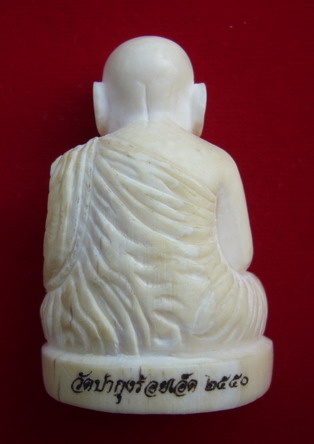 งาแกะรูปเหมือนหลวงปู่ศรี มหาวีโร สร้างจำนวน ๑๙ องค์ หน้าตักประมาณ ๑ นิ้ว สูงประมาณ ๑.๗ นิ้ว..หลวงปู่เมตตาปลุกเสกให้เมื่อวันที่๒๓/๑๒/๒๕๕๐คณะศิษย์อ่อนนุชสร้าง..ใต้ฐานบรรจุเกศาหลวงปู่ศรีและของมงคล๕อย่างของหลวงปู่ศรี ที่ฐานด้านหน้าเขียนว่า พระศรี มหาวีโร ที่ฐานด้านหลัง วัดป่ากุง ร้อยเอ็ด ๒๕๕๐ ใต้ฐาน โค๊ด ศ....และหมายเลขประจำองค์พระ (ตัวหนังสือทุกตัวยิงด้วยเลเซอร์) ป้องกันการปลอมแปลง รับประกันไม่มีการสร้างเพิ่มและไม่มีเสริมแน่นอนครับ(พิเศษมีพิมพ์ก้นตัน๑องค์ ไม่บรรจุเกษาหมายเลข๒๐) |