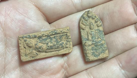 เคาะเดียว+ พระพลายคู่ตัดเดี่ยว กรุวัดบ้านกร่าง พิมพ์หน้ามงคลกลาง (สภาพใช้และซ่อมซุ้มบน) "ไม่มีทองนะครับ" |