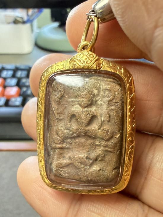 พระเนื้อดิน ปิดทองเก่า ไม่ทราบกรุ ขนาดหน้าตัก1.4ซม.สูง2ซม. เลี่ยมพร้อมใช้ |