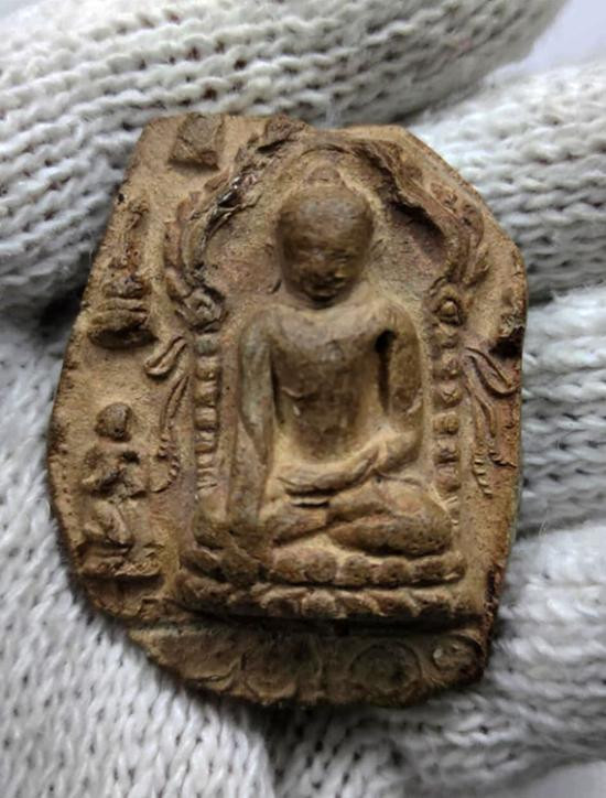 เคาะเดียวแดง+++พระพุทธ กรุวัดเงิน พิมพ์เล็บมือสมาธิ เนื้อผง กรุงเทพฯ มาพร้อมบัตรรับรองพระแท้ ระบุสภาพชำรุดใบหน้าขวา |