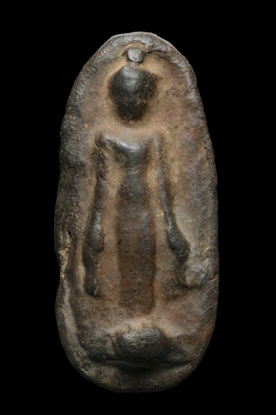พระลีลาถ้ำหีบกรุวัดกระเถรครึ่งหนังสุโขทัยสภาพหักครึ่งเหลือส่วนบน |