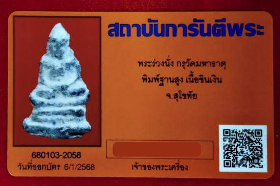 พระร่วงชินเงิน สุโขทัย พิมพ์ฐานสูง กรุวัดมหาธาตุ จ.สุโขทัย พุทธศตวรรษที่ 18-19 |