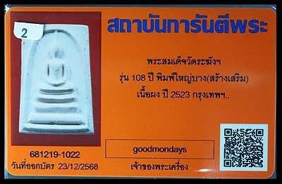 พระสมเด็จวัดระฆังฯ รุ่น 118 ปี พิมพ์ใหญ่ ( หลังตรายาง ) เนื้อผง ปี 2533 สวยๆ มาพร้อมบัตรรับรองครับ |
