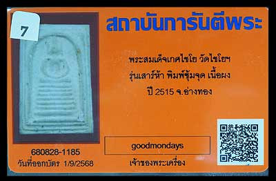 พระสมเด็จเกศไชโย วัดไชโยวรวิหาร จ.อ่างทอง รุ่นเสาร์ห้า ปี2515 พิมพ์ 7 ชั้น |