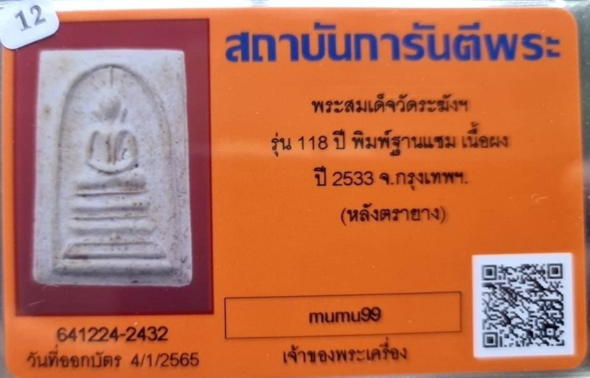 รูปเหมือนพระสมเด็จโต พร้อมบัตรรับรองจากเว็ปครับ ไม่ทราบที่ ยี่ห้อรุ่นครับ พระรังเก่า ชุดนี้ผมไปเหมาบ้านที่กรุงเทพฯมาได้มาหลายอย่าง ทยอยลงครับ วัดใจเท่าไหนเท่านั้นครับ |