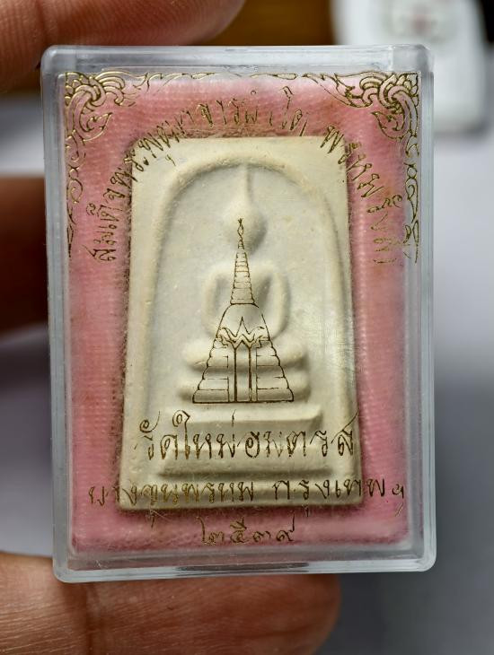 พระสมเด็จรุ่นเสาร์ห้า วัดระฆังโฆสิตารามวรมหาวิหาร พิมพ์ใหญ่ เกศทะลุซุ้ม(นิยม) ปี 2536 ปั๊มตรายาง พร้อมกล่อง |