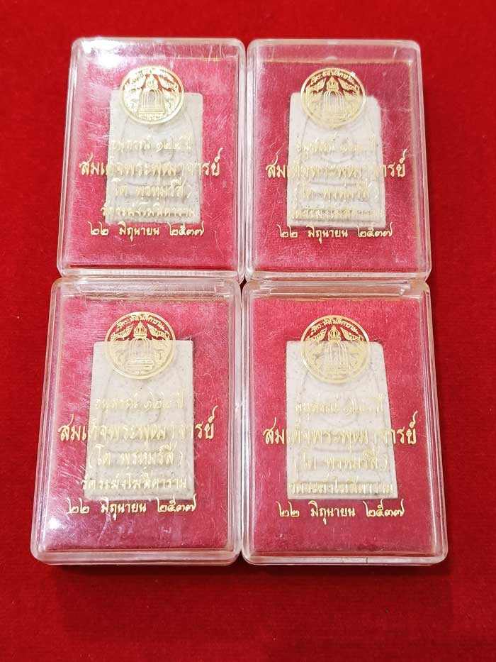วัดใจ 100 เดียวแดง ++ พระสมเด็จวัดระฆัง 122 ปี สภาพสวยพร้อมกล่อง 4 องค์ |