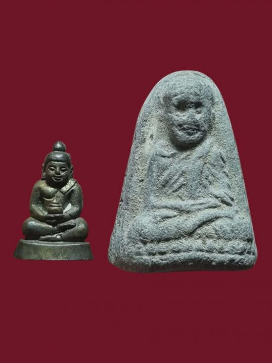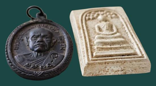 พระสมเด็จ หลวงพ่อจวน วัดหนองสุ่ม + เหรียญเม็ดแตง หลวงพ่อจวนวัดหนองสุ่ม ปี 22 |