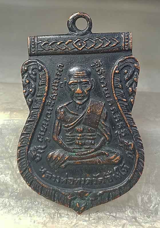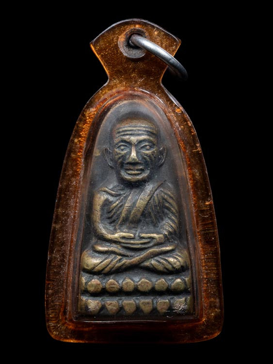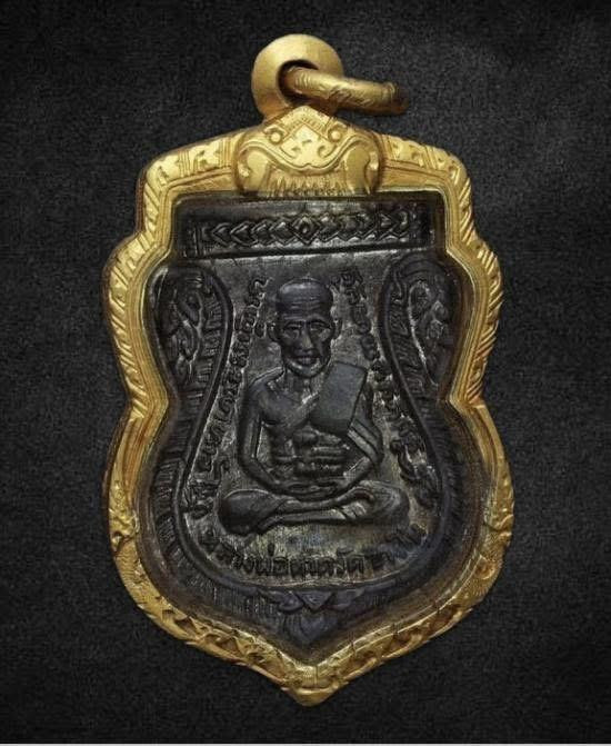 เหรียญหลวงปู่ทวดรุ่น3 ปี2504 บล็อกคางจุดมือมีเข็ม เนื้อทองแดงรมดํา เลี่ยมทองหนาๆ เปอร์เซ็นสูง 90% |