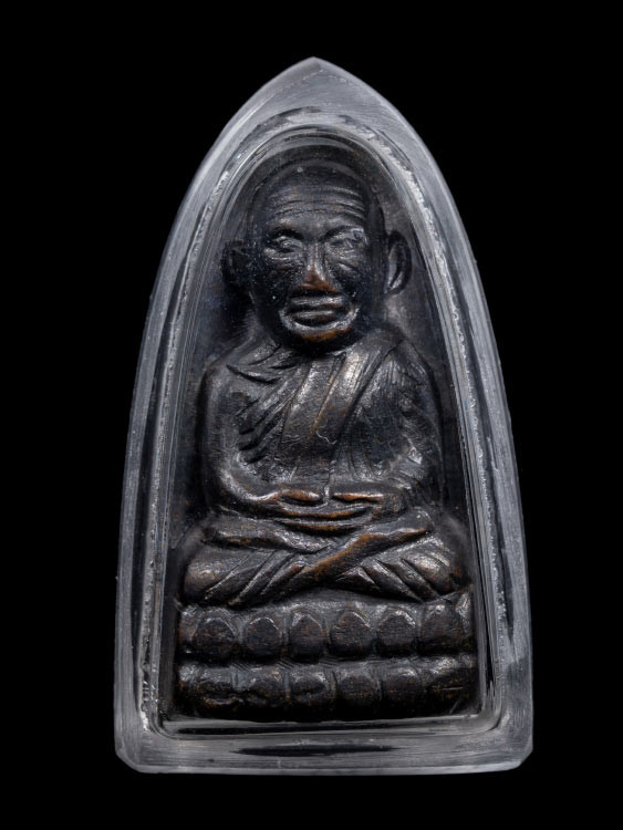หลวงปู่ทวด พิมพ์ใบสาเก เนื้อทองแดงรมดำ |