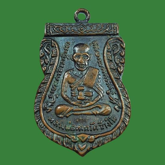 พระหลวงปู่ทวด วัดช้างให้ พิมพ์หลังหนังสือเล็ก (มีหู) เนื้อทองเหลือง ปี 2505 จ.ปัตตานี (บัตรสถาพสวย) |