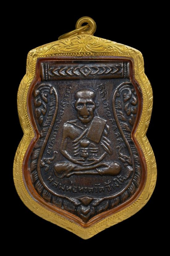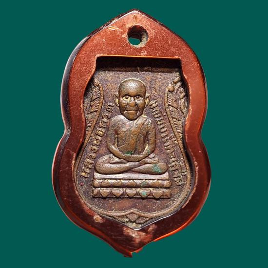 เหรียญเม็ดแตง ปู่ทวด ปี08 บล็อคหน้าสายฝน หลังวงเดือน สวยเดิม พร้อมทองยกซุ้ม |