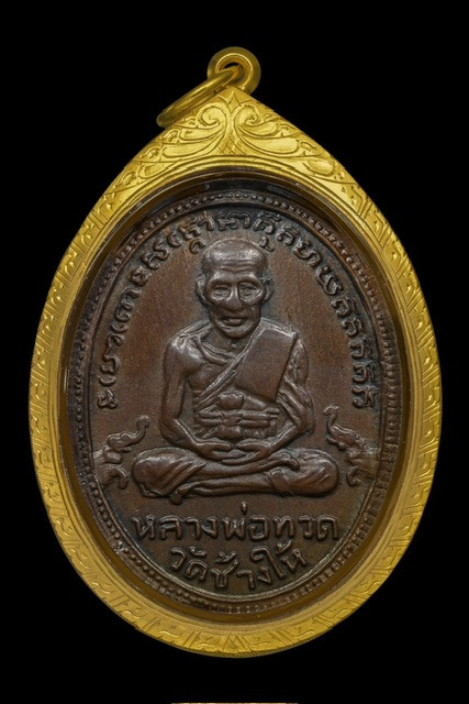 หลวงพ่อทวดหลังหนังสือเล็ก พิมพ์ก้ามปู ปี 2508 วัดช้างให้ จ.ปัตตานี เนื้อกะไหล่ทองเลี่ยมเดิม |