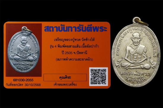 วัดใจ หลวงปู๋ทวด หลังเตารีด พิมพ์ปั้มซ้ำพิมพ์ใหญ่ ปีกกว้าง พร้มบัตรรับรอง ป๋องสุพรรณ |