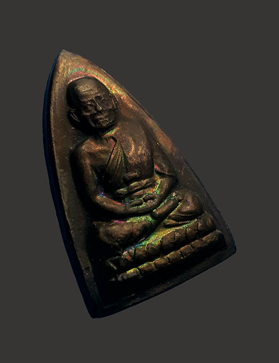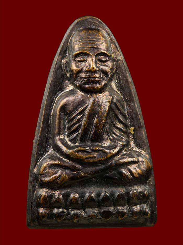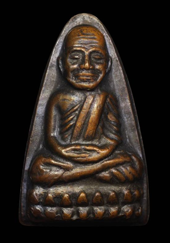 เหรียญหยดน้ำหลวงปู่ทวด วัดช้างให้ ปี 2522 พิมพ์หน้าแก่ เนื้อทองแดงรมน้ำตาล เคาะเดียวแดง |
