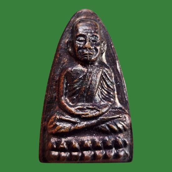 หลวงปู่ทวด วัดช้างไห้ พิมพ์กลีบบัว(รศ.200) พิมพ์นิยมบล็อกหน้ารุ่น1เนื้อทองเหลืองรมดำ พิมพ์ชัดสวยยยงาม ปี 2525 อ.นอง วัดทรายขาวปลุกเสก |