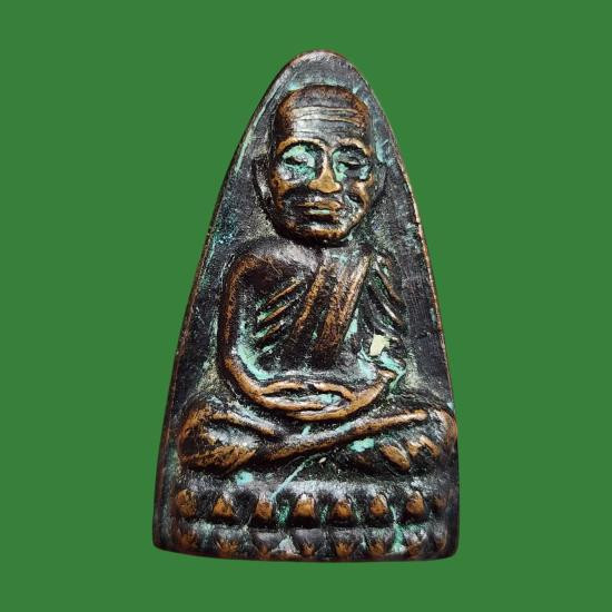 พระหลวงปู่ทวด หลังหนังสือ ปี24 เนื้อทองเหลือง รมดำ หลังสามจุด(นิยม ) |