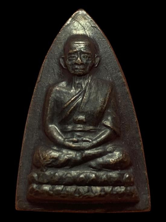 พระหลวงปู่ทวด วัดช้างให้ พิมพ์เตารีดหลังตัวหนังสือ ((หลัง 10 ขีด)) เนื้อทองแดง ปี 2524 |