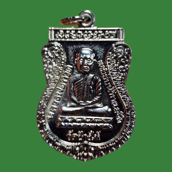 เหรียญหลวงพ่อทวด ใต้ร่มเย็น ปี2526 เนื้อทองแดงชุบนิเกิ้ล บล็อกแข้งขีด หลังยันต์ขีด(นิยม) |