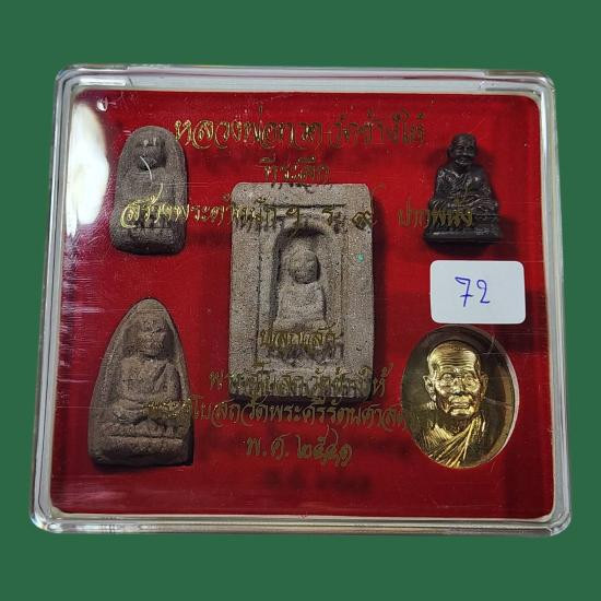 หลวงปู่ทวด อาจารย์นอง รุ่นสร้างตำหนักปากพนัง ร.๙(สร้างบ้านให้พ่อ) พิมพ์สี่เหลี่ยม แจกกรรมการ ฝังตะกรุด ปี 2541 พร้อมกล่องเดิม |