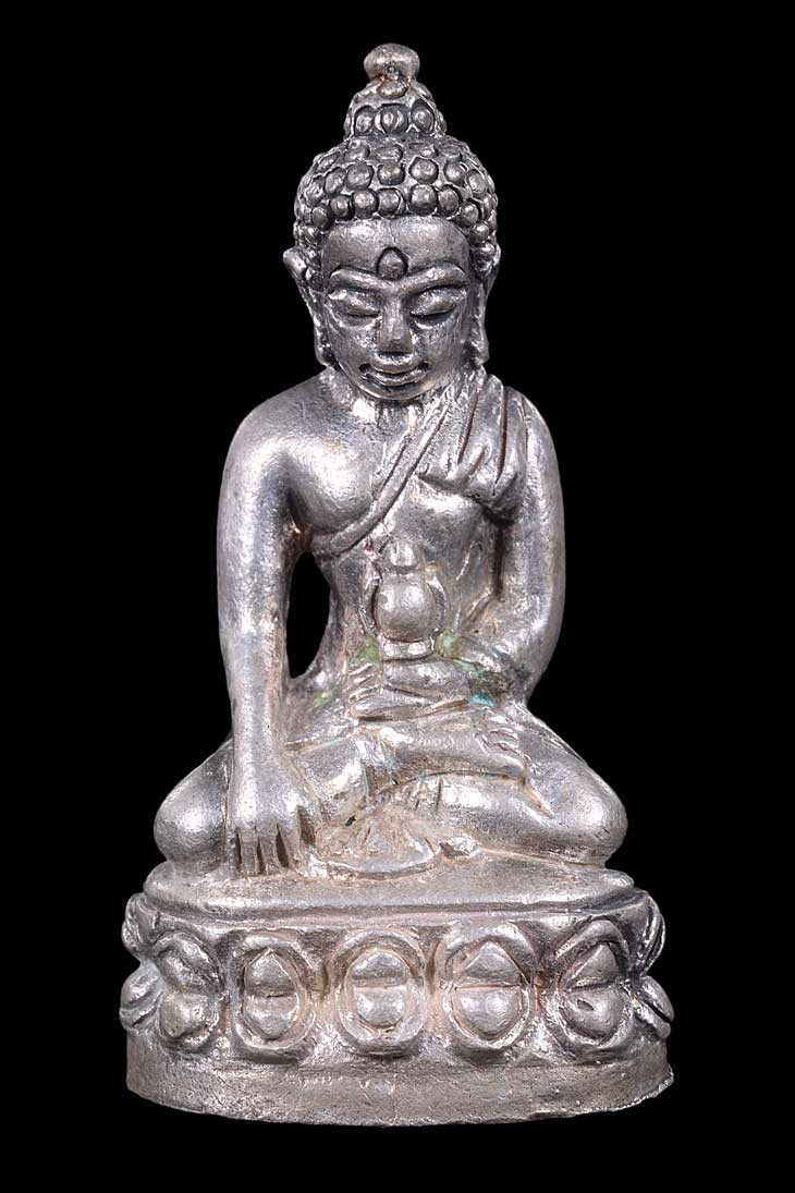 หลวงพ่อทวด วัดช้างไห้ เนื้อเงิน พิมพ์เตารีดเล็ก ปี 2536 อาจารย์นอง ปลุกเสก ไม่ผ่านการใช้ มีกล่องเดิม |