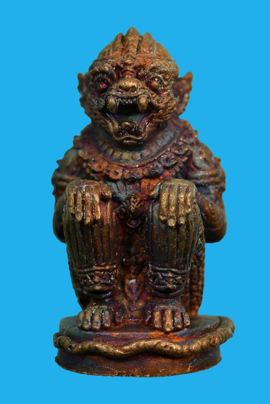 เลข 555 หนุมานชนะมารเนื้อทองแดงชนวน อุดผงพรายกุมาร หลวงปู่เขียว วัดห้วยเงาะ ขนาด ๓ ซม. |