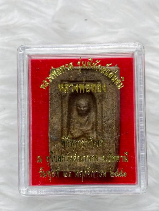 เคาะเดียวแดง หลวงพ่อทวด รุ่น สุวรรณมงคล พิมพ์สี่เหลี่ยมกลักไม้ขีด เนื้อว่าน ตะกรุดเงิน โดยอาจารย์ทอง วัดสำเภาเชย ปี 2548 สวยๆเนื้อจัดๆพร้อมกล่องเดิมไม่ผ่านการใช้(์L1) |