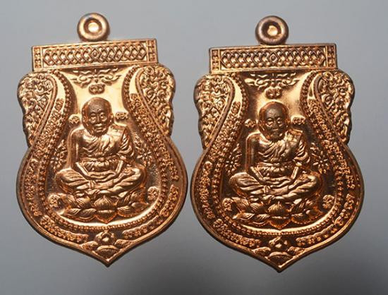 เคาะเดียวแดง อาจารย์ทองรุ่นทองฉลองเจดีย์ 2องค์ พิมพ์เลื่อน เนื้อทองแดงรมดำ |