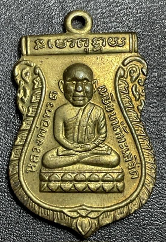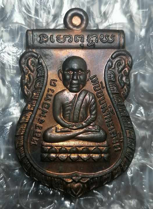 หลวงปู่ทวด รุ่นเลื่อนสมณศักดิ์ อาจารย์ทอง ปี 2545 พิมพ์ตัวด้วง หลังเตารีดหล่อโบราณ |